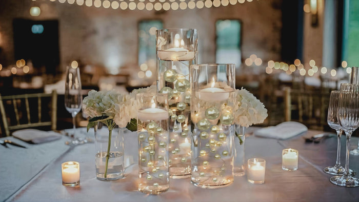 50 Floating White Snowflakes & Pearls-Plus Transparent Water Gels That Fills 1 Gallon for Your Vases- Option: 3 Submersible LED Fairy Lights Strings with Hidable & Submersible Batteries